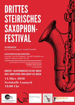 Am 14. März 2026 geht der Saxophontag mit Konzert in der Steinhalle Lannach über die Bühne.